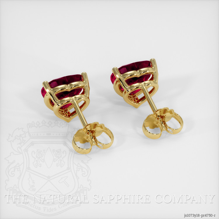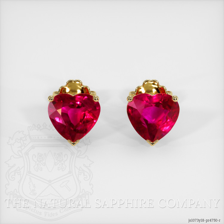 The Natural Ruby Company is pleased to present a pair of captivating earrings that exemplify our dedication to the beauty of natural rubies. Each earring is adorned with a stunning ruby, bearing the Stone ID PR4750-R. These rubies weigh 1.19 carats each and are celebrated for their rich pinkish-red hue. They boast impressive dimensions, measuring 4.97 mm in length, 5.11 mm in width, and stand with a height of 3.10 mm, offering a bold presence that is both elegant and commanding.