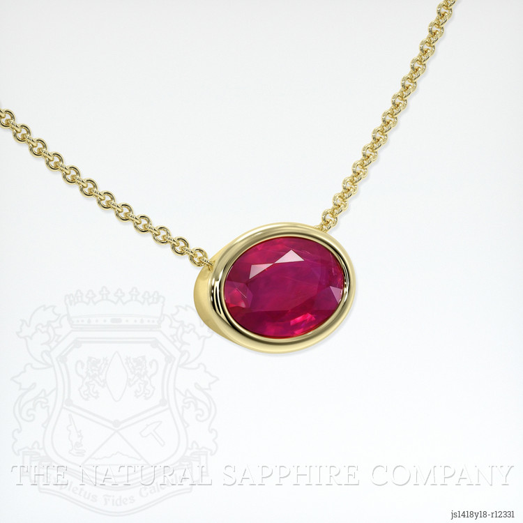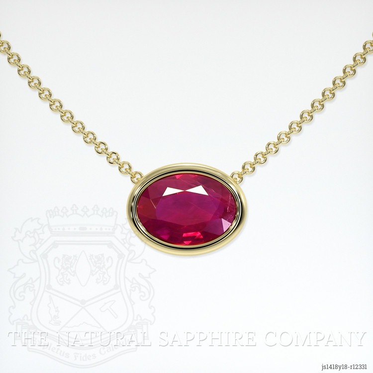 Imagine a realm where dreams are illuminated by the soft glow of starlit skies. Here lies the gem of a heart's desire—a creation of enchanting beauty. From The Natural Ruby Company comes an exquisite necklace, the perfect embodiment of timeless romance captured under the tender gaze of the moon. As if plucked from the mythical gardens of Burma, a brilliantly radiant 0.82 carat pinkish-red ruby takes center stage, its oval shape a poetic reflection echoing the gentle contours of a lover's whispered words. Transparent as a breeze flavored with the scent of roses, it captivates the heart with a vivid fervor and a stunning brilliance, narrating tales of ancient lands and mysteries embraced within its depths.