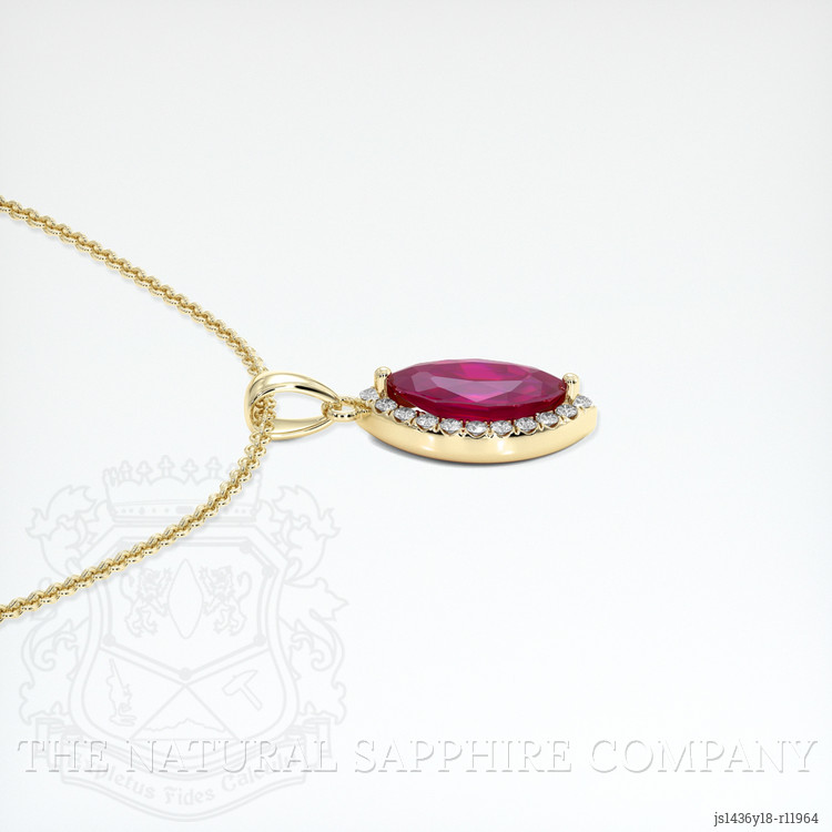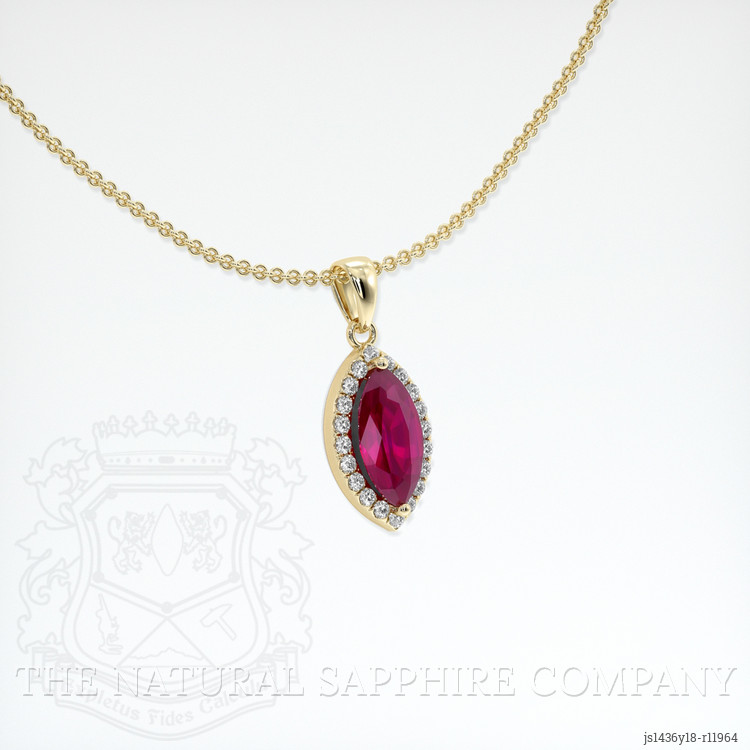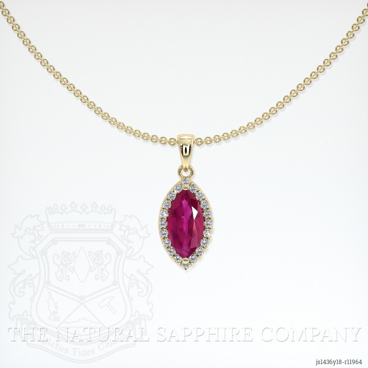Step into a world where elegance meets craftsmanship and experience the sublime beauty offered by The Natural Ruby Company. Our exquisite pendant, crafted in 14K yellow gold, is destined to captivate and allure those with a refined sense of style. This masterpiece features a mesmerizing marquise-shaped pinkish red ruby, sourced directly from the storied land of Burma (Myanmar). This transparent ruby, weighing 0.65 carats, possesses dimensions that speak volumes of its delicate brilliance, measuring 8.13 x 4.11 x 2.67 mm. Its mixed brilliant cut allows light to dance across its surface, making it an object of radiant beauty. With a clarity grade described as very slightly included, evaluated at eye level, and marked by intense color saturation, this ruby stands as an emblem of perfection, offering an excellent polish that enhances its natural allure.