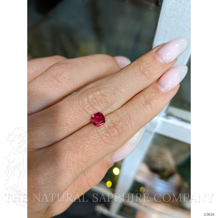 Introducing a masterpiece that epitomizes elegance and rarity—an exquisite ring crafted by The Natural Ruby Company. This exclusive piece features a rare and captivating 1.03-carat asscher-cut pinkish-red ruby, a treasure originating from the distant lands of Mozambique. The ruby's transparent clarity and vivid saturation make it one of nature's finest wonders, sparkling with an allure that captures the emotion and story of romance. Measuring 5.54 x 5.51 x 3.47 mm, this rare gemstone symbolizes eternal love and the timeless bond shared by soulmates. Such a rare find is not just an ornament, but a token of destiny.