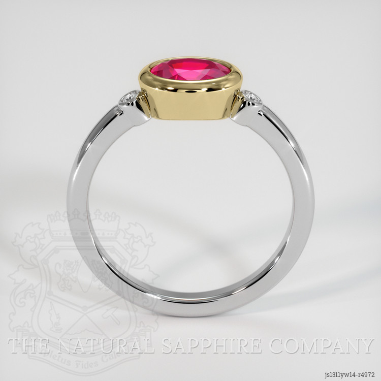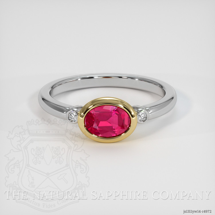 Crafted in an elegant combination of 18K yellow gold and 18K white gold, the ring's setting fosters a contemporary yet timeless aesthetic. The use of contrasting gold brings out the vivid hues of the ruby and diamonds, providing an exquisite backdrop that enhances the beauty of each gemstone. This dual gold setting ensures versatility and universality, allowing the ring to complement any attire and occasion.