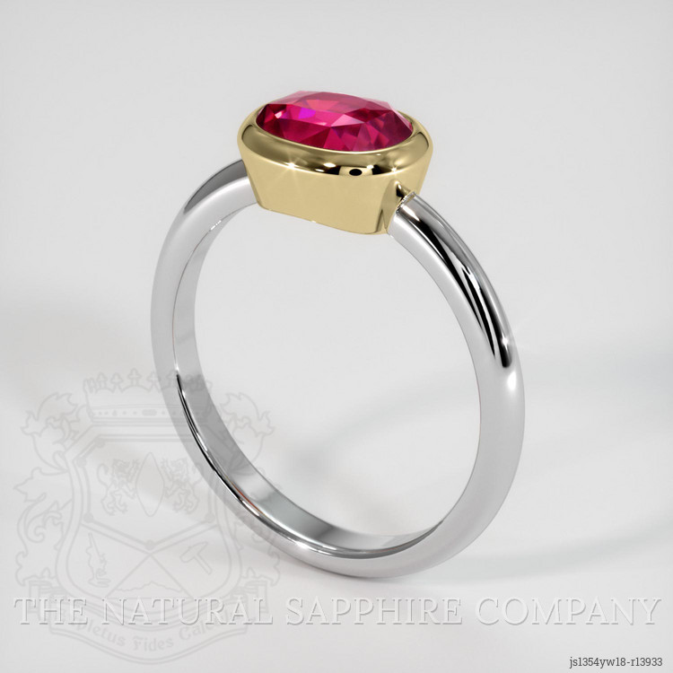 Additionally, the ring's setting in both 18K yellow gold and 18K white gold adds to its unique aesthetic appeal. This combination of precious metals enhances the vibrancy of the ruby while offering a modern and sophisticated look. The excellent polish of this ring further ensures that it radiates brilliance under various lighting conditions. In contrast, many rings in the market may feature standard gold settings without the distinct dual-tone allure or may use lower karat gold, affecting both appearance and value.
