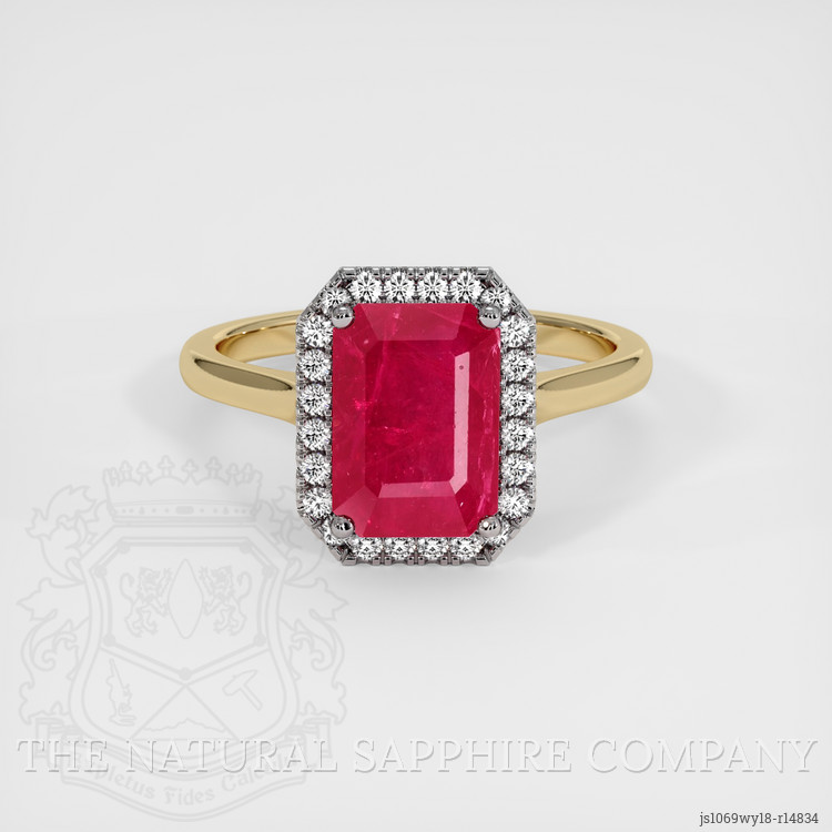 At The Natural Ruby Company, we offer you the pinnacle of luxury with our exquisite ruby and diamond ring, a true testament to elegance and sophistication. At the heart of this magnificent piece lies a transparent, 3.76 carat emerald-cut ruby, its enchanting pinkish-red hue captivating the senses and inviting an admiration that transcends time. Sourced from the historic lands of Mozambique, this gem has been meticulously heat-treated to enhance its vibrant color saturation, ensuring that its intensity and passion are eternally preserved.