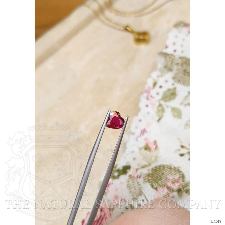 Introducing a truly remarkable piece from The Natural Ruby Company—an exquisite ring that transcends the ordinary with its dazzling heart shape pinkish red ruby. This 1.02-carat gemstone captures the essence of eternal love through its stunning brilliance and impeccable craftsmanship. With dimensions of 6.84 x 6.86 x 2.79 mm and a mixed brilliant cut, the ruby offers a unique combination of elegance and grace. Its intense color saturation and excellent polish make it stand out from other gemstones on the market, symbolizing an enduring commitment that sparkles unceasingly. Unlike other rubies, ours is sourced from the illustrious lands of Mozambique and is heat-treated to amplify its natural allure, further elevating the standard of quality.