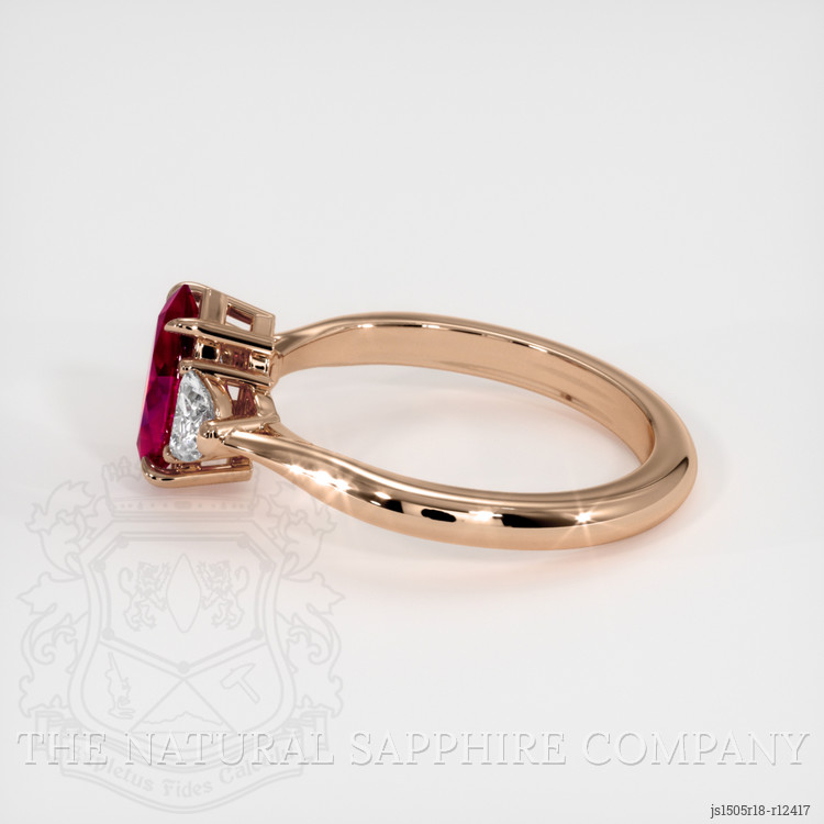 Three Stone Ruby Ring 1.24 Ct., 18K Rose Gold