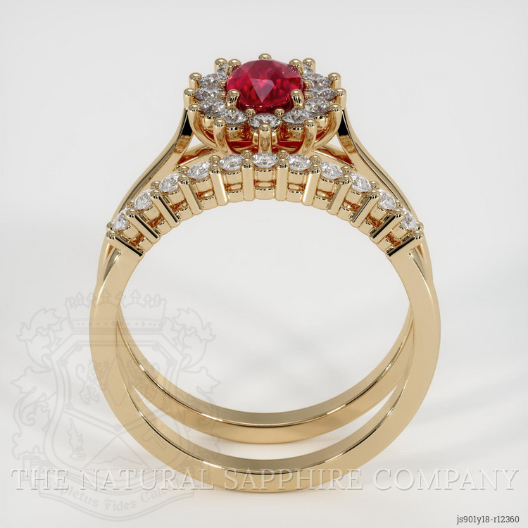 Halo Ruby Ring 0.69 Ct., 18K Yellow Gold