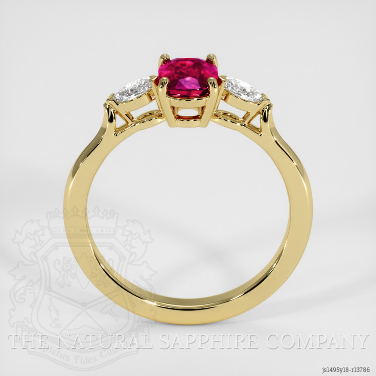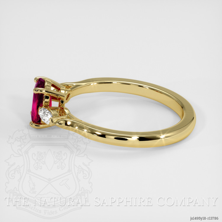 Three Stone Ruby Ring 0.84 Ct., 18K Yellow Gold