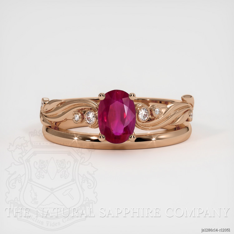Wedding Set Ruby Ring 0.85 Ct., 14K Rose Gold