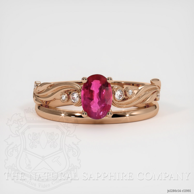 Wedding Set Ruby Ring 0.88 Ct., 14K Rose Gold