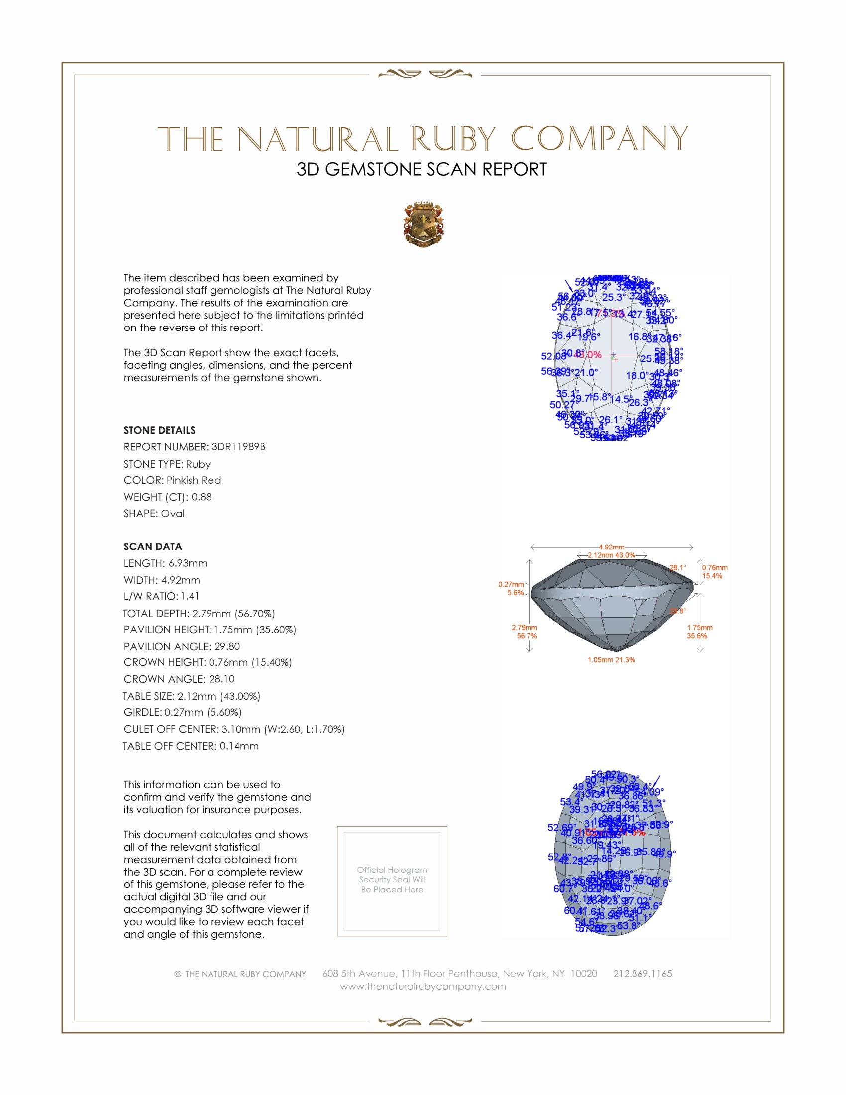 Our packaging, reports and documentation is refined, concise and reputable. Our reputation is our greatest asset, rest assured we don’t cut corners, please review our extensive reporting and specialty packaging for all our ruby items.