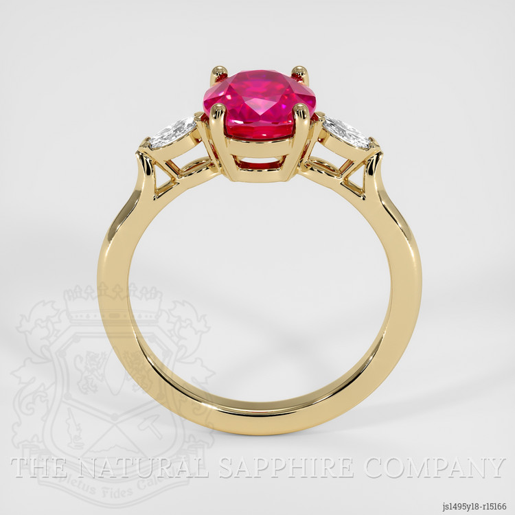 Three Stone Ruby Ring 1.98 Ct., 18K Yellow Gold