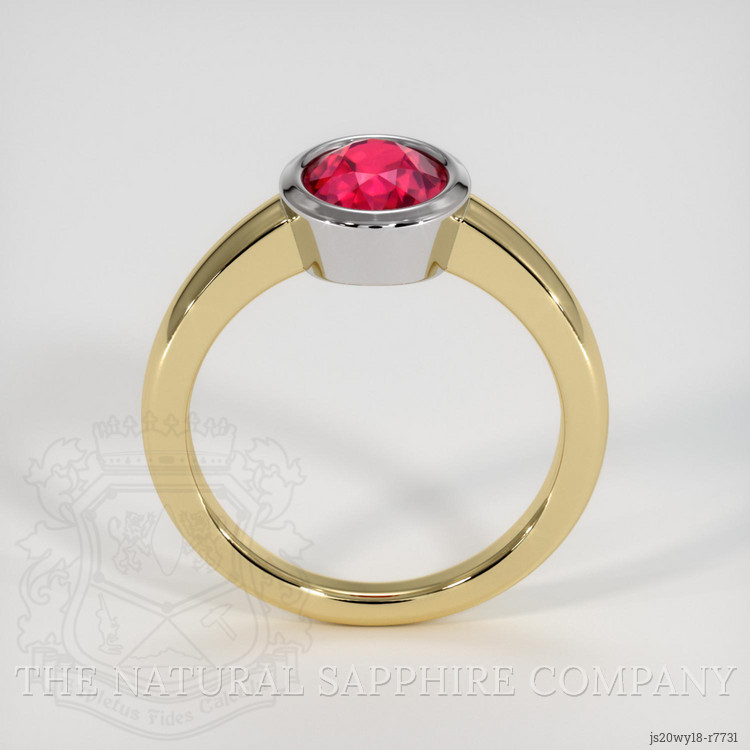 The ring itself is designed with meticulous craftsmanship and expertise, set entirely in 18K white gold and 18K yellow gold. This combination of metals creates a visually striking contrast, accentuating the vivid red hue of the ruby. The ring's band, crafted in 18K yellow gold, provides a rich, warm foundation, while the 18K white gold setting surrounding the ruby introduces a sleek, contemporary touch. This harmonious blend of traditional and modern elements ensures the ring is as timeless as it is stylish.