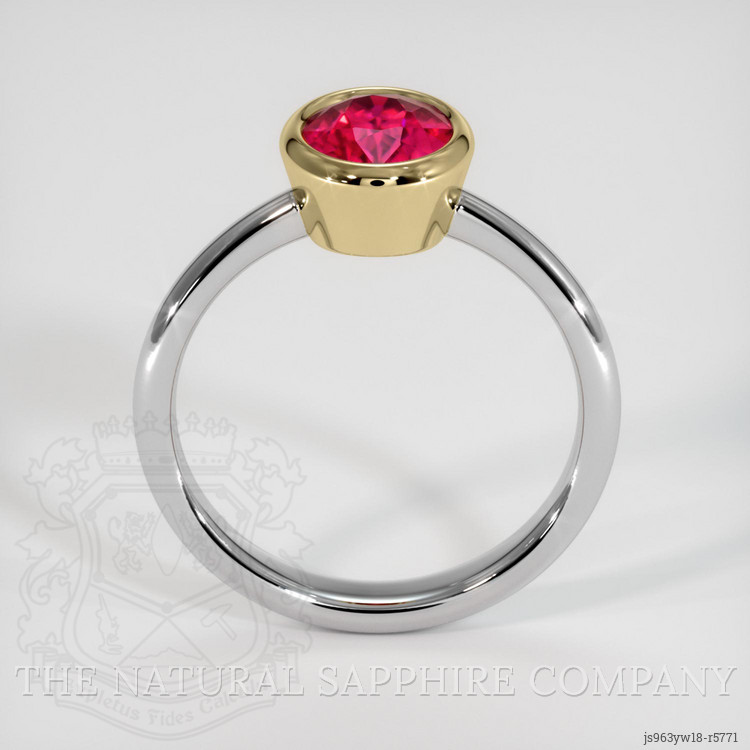 The entire piece is masterfully crafted and set in a harmonious blend of 18K yellow gold and 18K white gold. The yellow gold setting accentuates the ruby's lush pinkish-red hues allowing the gemstone to stand out brilliantly. Simultaneously, the white gold band provides a sleek and sophisticated contrast balancing the design to radiate both modern and classic charm. This exquisite combination of mixed metals ensures durability and complements a variety of styles. The comfort-fit structure of the ring also guarantees it sits effortlessly on the finger.
