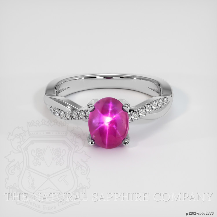 Complementing the resplendent ruby are white round shaped natural diamonds, collectively weighing approximately 0.297 carats. These diamonds boast a clarity rating of VS and a color grade of F/G, delivering an impeccable contrast that enhances the striking vibrancy of the ruby. Set in 14K white gold, this ring epitomizes sophistication, making it the perfect choice for an engagement or a treasured addition to any gem enthusiast's collection. The synergy between the ruby's vivid hues and the diamonds' brilliance is not merely visually appealing, but also a harmonious blend of nature’s finest work.