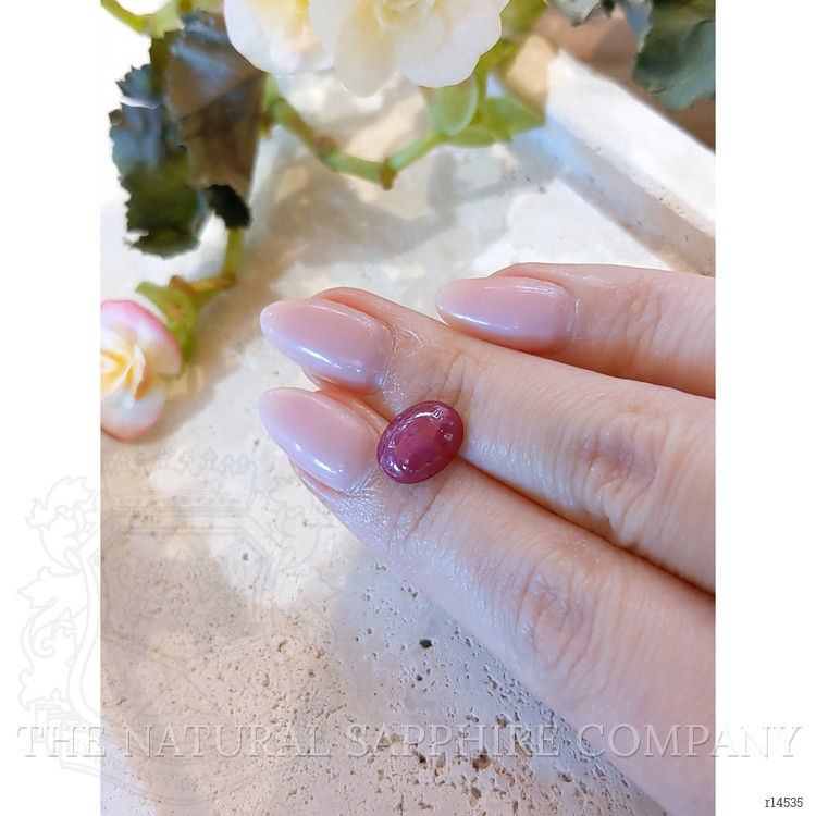 Our ruby requires no enhancement to unveil its innate beauty, reminding us of the authenticity and untouched splendor of the natural world. The cabochon cut, one of the earliest and most traditional styles of gemstone shaping, allows the ruby's inherent glow and vibrant color to take center stage, uninterrupted by facets. This mastery of simplicity bears witness to the ruby's power to impress with minimal intervention. With a smooth, polished surface, the gemstone captures and reflects light in soft hues, offering a serene yet striking appearance that appeals to those with a taste for classic elegance.