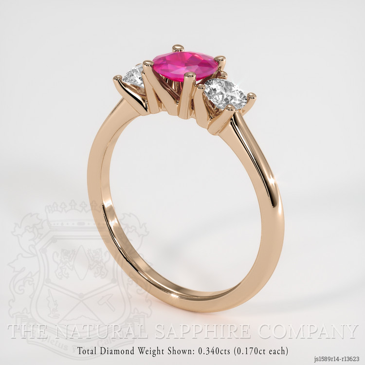 Three Stone Ruby Ring 0.45 Ct., 14K Rose Gold