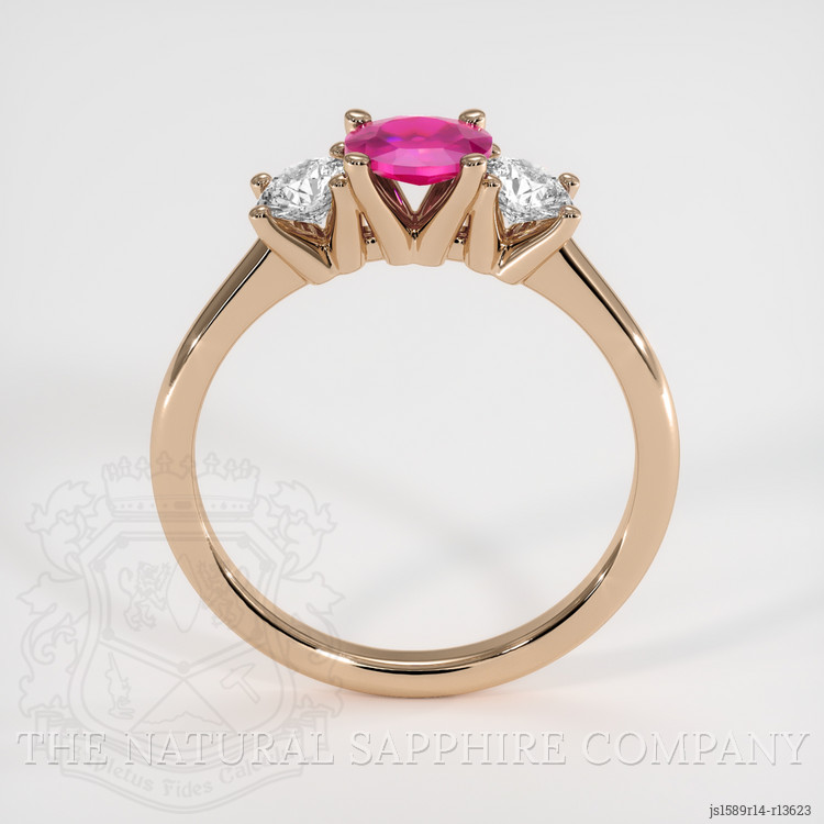 In the realm of timeless elegance and enduring beauty, our exquisite ruby ring stands as a testament to the rich history and profound legacy of gemstones. The centerpiece of this remarkable creation is a stunning 0.45 carat round pinkish-red ruby from the storied lands of Mozambique. This gem, known for its captivating hue and storied origins, connects us to ancient times when rubies were treasured by royalty and revered in various cultures for their striking beauty and symbolic significance. Set within the warm embrace of 18K rose gold, this ruby shines with a mixed brilliant cut that captures light from every angle, offering a vivid color saturation that promises to never fade with time.