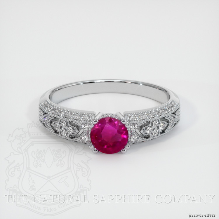 Antique Style Ruby Ring 0.61 Ct., 18K White Gold
