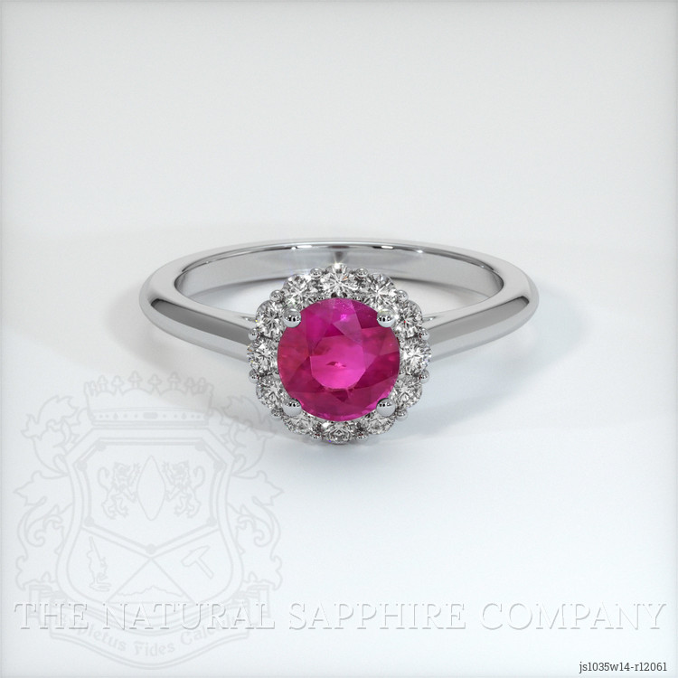 Halo Ruby Ring 0.70 Ct., 14K White Gold