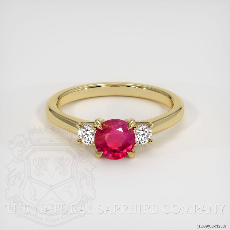 Three Stone Ruby Ring 0.75 Ct., 18K Yellow Gold