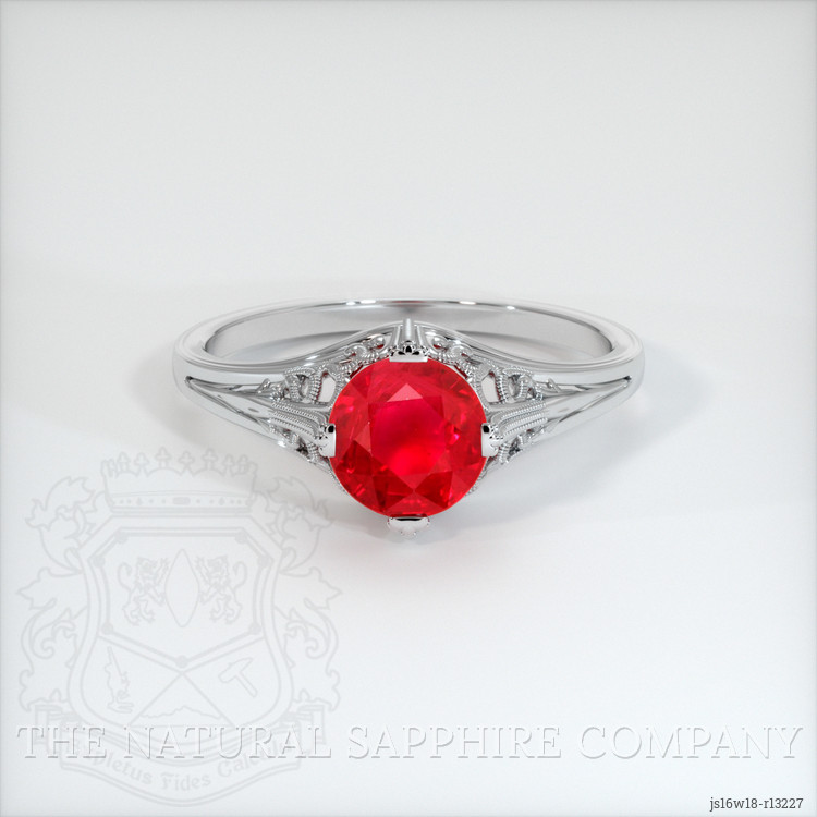 Antique Style Ruby Ring 1.20 Ct., 18K White Gold