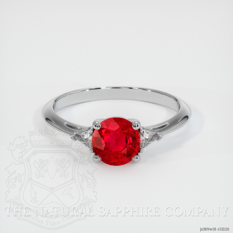 Three Stone Ruby Ring 1.20 Ct., 18K White Gold