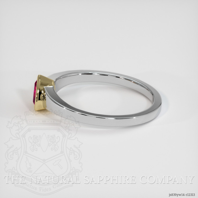 The ring is meticulously crafted in an exquisite combination of 18K yellow gold and 18K white gold, punctuating the vivid brilliance of the ruby while ensuring it stands out prominently. The unique two-tone setting enriches the luxurious appeal of the ring creating a versatile piece that effortlessly complements other fine jewelry. The yellow gold setting embraces the ruby securely, providing a striking boundary through which the pinkish red hues can shine distinctly. Meanwhile, the sleek band of white gold offers modern sophistication and superior support ensuring comfort and durability.