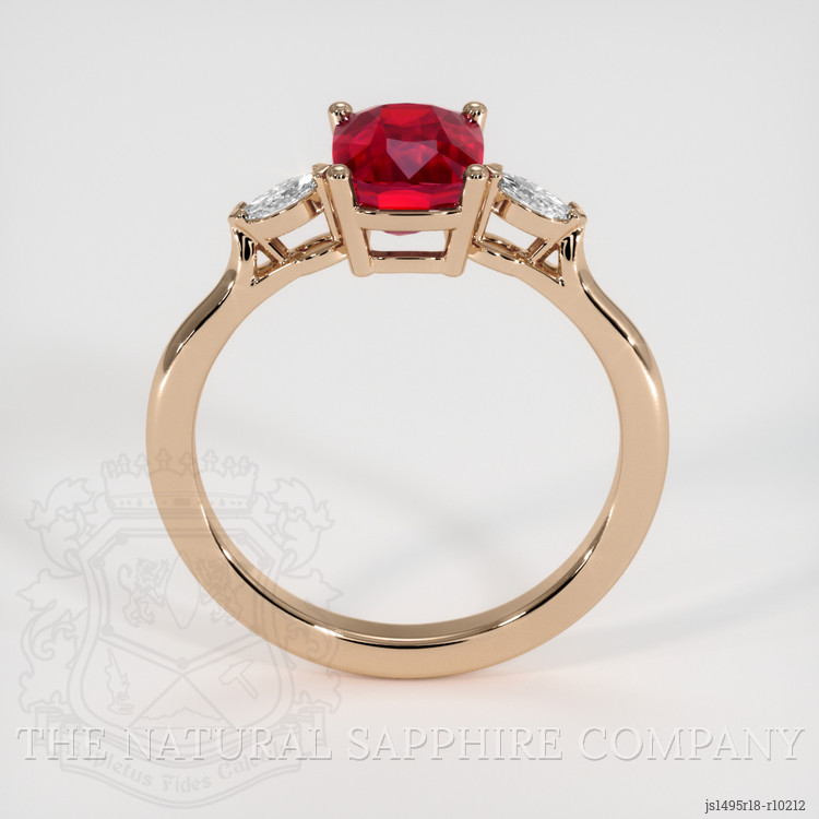 The Natural Ruby Company proudly presents an exquisite creation where artistry meets rarity, a testament to distinguished taste and the epitome of luxury, the 18K Rose Gold Ruby and Diamond Ring. At its heart lies a stunning GRS certified Purplish-Red ruby, weighing 2.03 carats, a gem that promises exclusivity and magnificence. The cushion shape accentuates its beauty, while its dimensions, 7.65 x 5.90 x 4.22 mm, reflect the perfect balance between delicate design and bold elegance. The exceptional mixed brilliant cut unleashes a play of light that dances across the stone's surface, captivating onlookers with its intense color saturation. Sourced from the esteemed lands of Mozambique, this gem confers not only a tangible radiance but a heritage that honors its mysterious origins.