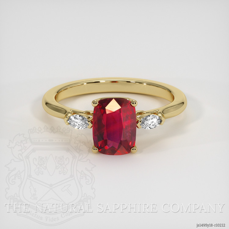 Three Stone Ruby Ring 2.03 Ct., 18K Yellow Gold