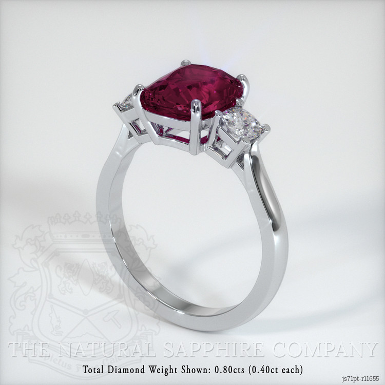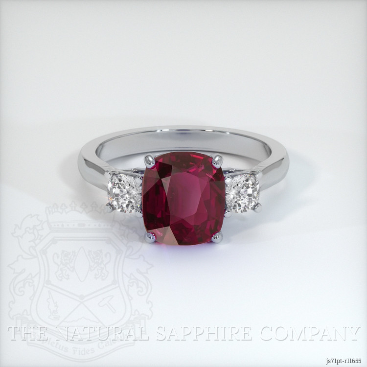 Three Stone Ruby Ring 4.11 Ct., Platinum 950