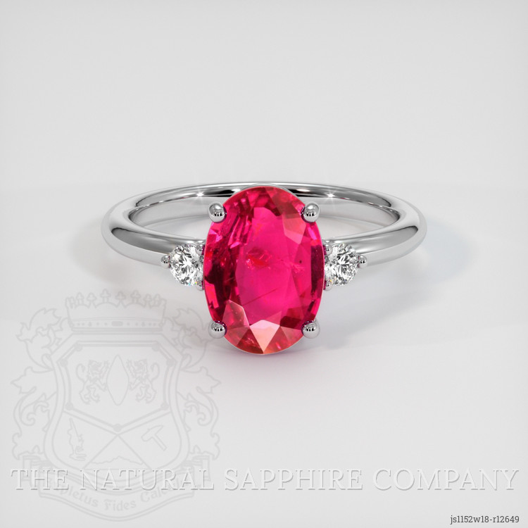 Bathed in the glow of romance and timeless beauty, this exquisite ring from The Natural Ruby Company whispers tales of eternal love and divine allure. It centers around a mesmerizing 2.10 carat oval-shaped ruby, its purplish-red hues reminiscent of a sunset's gentle embrace. This gem, sourced from the rich lands of Mozambique, captures the heart with its intense color saturation and remarkable transparency. Cut with a mixed brilliant technique, every facet becomes a mirror reflecting dreams, shimmering with an excellence that beckons admiration. The clarity, subtle yet definitive, assures a pristine glimpse into the allure within, inviting a gaze that lingers, ever caught like a cherished memory.