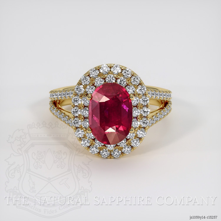 The setting at The Natural Ruby Company complements the center stone with approximately 1.35 carats of white round natural diamonds, divided into 0.756 carats and 0.594 carats, all graded VS for clarity and F/G for color. These diamonds are near colorless and eye clean, chosen to create a bright halo and split shank that both protect and visually enlarge the ruby while maintaining overall brilliance. The ring is rendered in 18 karat yellow gold, a metal choice that enhances the warm, purplish red of the ruby and provides a classic, luxurious contrast to the white diamonds. For an educated buyer, the combination of a large, unenhanced, vividly saturated Tanzanian ruby, high quality VS F/G diamonds, and expert gold setting represents a strong value proposition when compared to famous ruby rings where treatment is sometimes assumed or where provenance does not guarantee clarity and polish. This piece is suitable for collectors and discerning buyers who prioritize natural origin, minimal inclusions at eye level, and uncompromised color, and it stands as a confident offering from The Natural Ruby Company that marries gemological integrity with refined design.