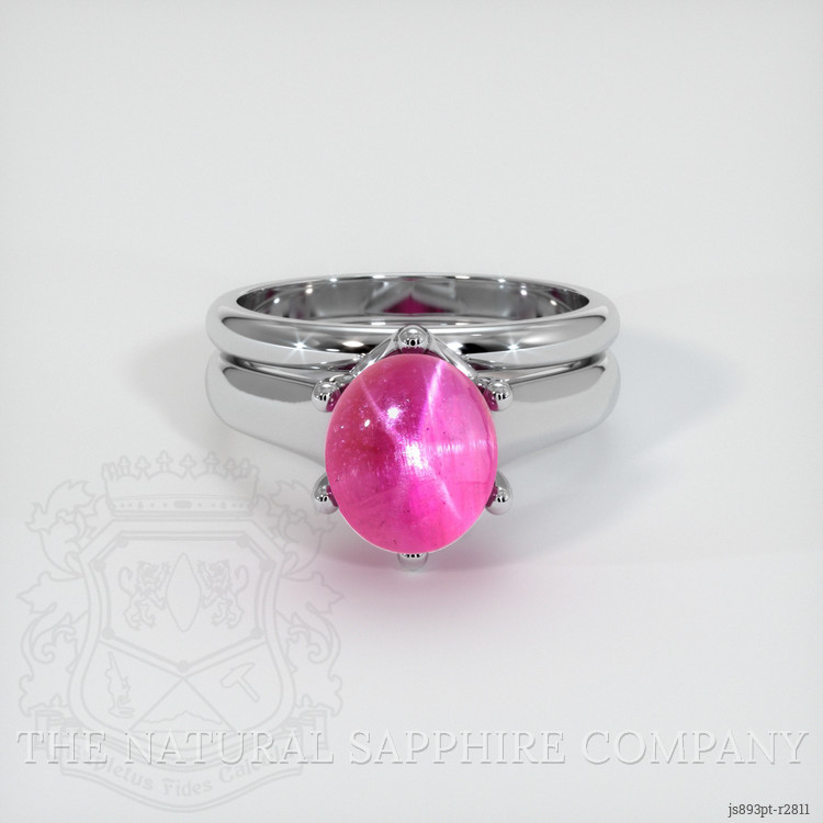 The ring features a beautiful, translucent GIA certified Purplish Red 7.60 carat oval shape purplish red ruby with the dimensions of 10.11 x 8.70 x 8.11 mm and a cabochon cut. It has a clarity grade of very slightly included (evaluated at eye level), intense color saturation, and an excellent polish. The origin of this ruby is Ceylon (Sri Lanka).