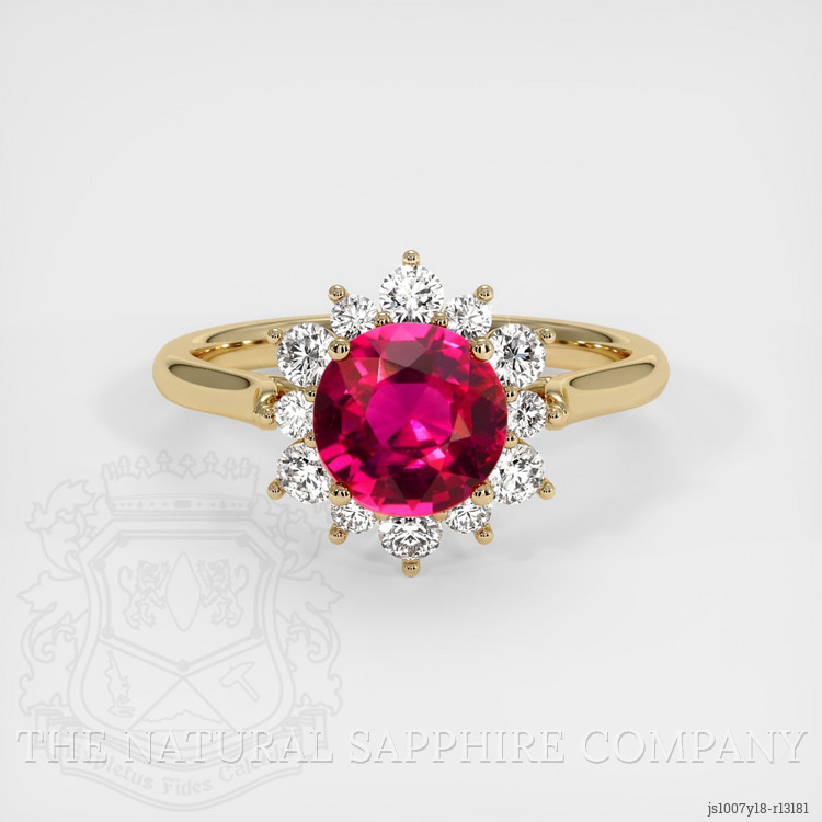 Halo Ruby Ring 1.51 Ct., 18K Yellow Gold