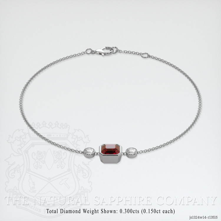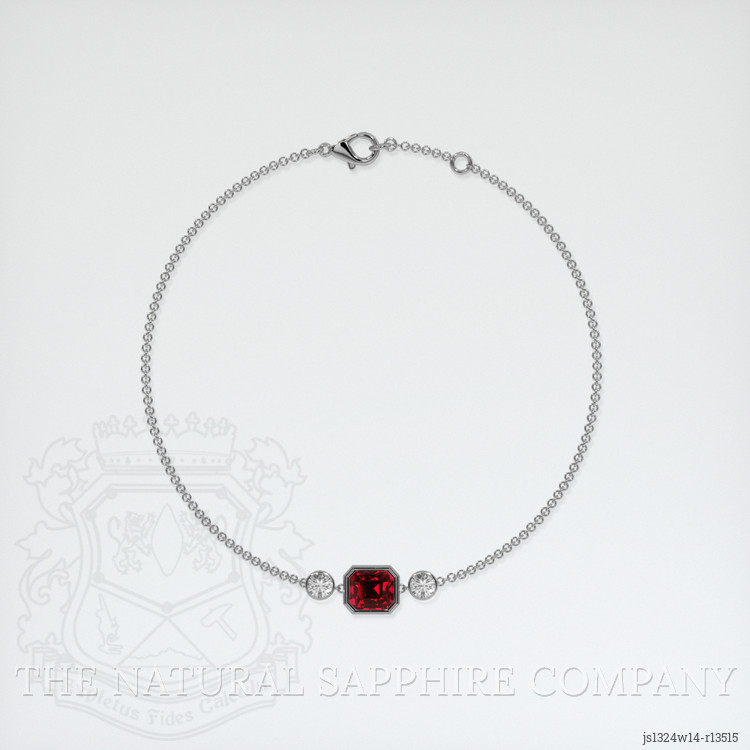 The bracelet features a beautiful, transparent GRS certified Vivid Red “Vibrant” 1.55 carat asscher - octagon shape red ruby with the dimensions of 6.22 x 5.54 x 4.94 mm and a asscher cut. It has a clarity grade of eye clean (evaluated at eye level), vivid color saturation, and an excellent polish. The origin of this ruby is Mozambique.
