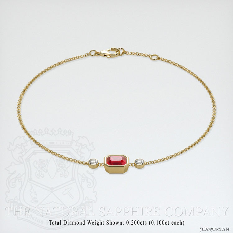 The bracelet features a beautiful, transparent GIA certified Red 1.14 carat emerald cut shape red ruby with the dimensions of 6.22 x 4.96 x 3.71 mm and a step cut. It has a clarity grade of very slightly included (evaluated at eye level), vivid color saturation, and an excellent polish. The origin of this ruby is Mozambique.