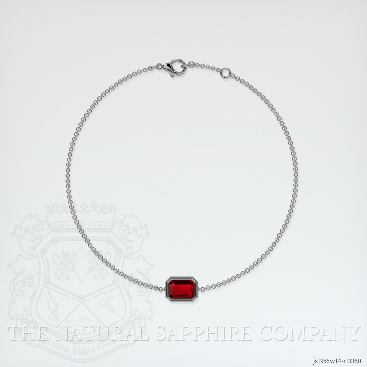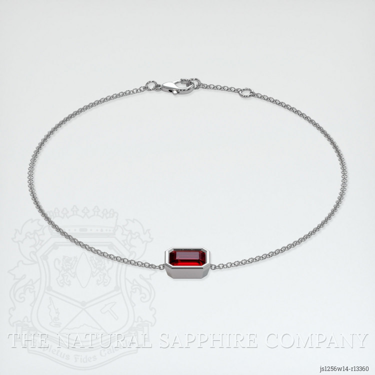 The bracelet features a beautiful, transparent GIA certified Red 1.16 carat emerald cut shape red ruby with the dimensions of 7.10 x 5.24 x 2.78 mm and a emerald cut. It has a clarity grade of very slightly included (evaluated at eye level), vivid color saturation, and an excellent polish. The origin of this ruby is Mozambique.