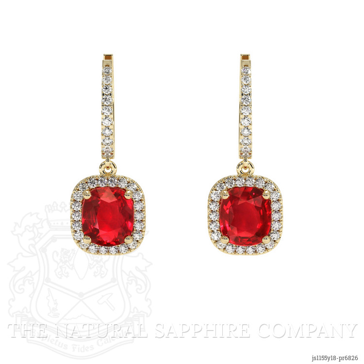 Indulge in the epitome of luxury with these exclusive earrings from The Natural Ruby Company, where rarity meets artistry in a dazzling symphony of gemstones. Each piece features a striking pair of transparent GRS certified rubies, handpicked for their unparalleled beauty and vivid color saturation. With a total carat weight of 3.17, these rubies, sourced from the legendary mines of Mozambique, boast a cushion shape and are mixed brilliant cut, radiating a captivating sparkle that is truly one-of-a-kind. Evaluated eye clean for clarity with very slight inclusions, and enhanced with an excellent polish, these rubies rest in an exquisite setting that is sure to captivate any audience with their innate allure.