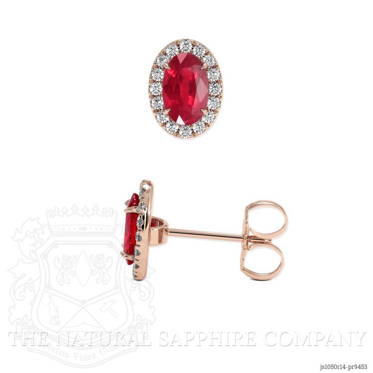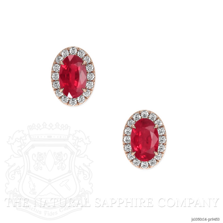 Introducing a pair of exquisite earrings from The Natural Ruby Company that seamlessly blend artistry and precision, featuring a captivating pair of transparent rubies. These rubies, with a total carat weight of 1.01, are shaped into elegant ovals measuring 6.09 x 3.98 x 2.61 mm. They exhibit a mixed brilliant cut, showcasing their slightly included clarity as evaluated at eye level. The stones boast intense color saturation, enhanced by excellent polish, originating from the renowned gemstone mines of Mozambique. These rubies bring a vivid burst of color, ensuring they captivate attention at any occasion.