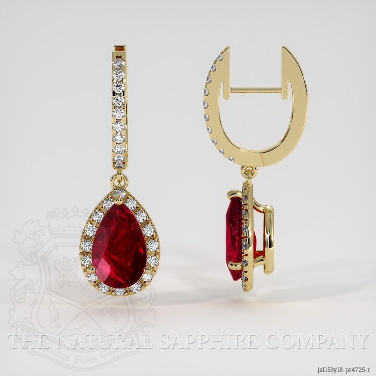 The Natural Ruby Company presents an exquisite pair of earrings that are both a symbol of timeless elegance and a worthy investment for the discerning buyer. These earrings feature a stunning duo of transparent, pear-shaped rubies, boasting a total carat weight of 5.59. Each ruby measures 10.85 x 6.85 x 4.90 mm and is expertly cut with a mixed brilliant technique, which enhances the inherent beauty and luminosity of the stones. With a clarity grade of very slightly included, as evaluated at eye level, these rubies exhibit a vivid color saturation that is certain to captivate the attention of any admirer. The origin of these exceptional rubies is Mozambique, a region renowned for producing some of the finest rubies in the world. Mozambique rubies are celebrated for their rich red hues, which possess a deep intensity that reflects the passion and craftsmanship of the artisans who have refined them.