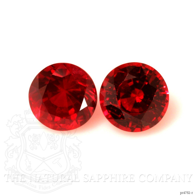The earrings feature a beautiful, transparent pair of rubies that are 1.49 total carat weight. They are round shape red rubies, with the dimensions of 7.94 x 7.88 x 5.75 mm and are mixed brilliant cut, have a clarity grade of eye clean (evaluated at eye level), vivid color saturation, and an excellent polish. Enhancement: heat treated. The origin of this pair of rubies is Mozambique.