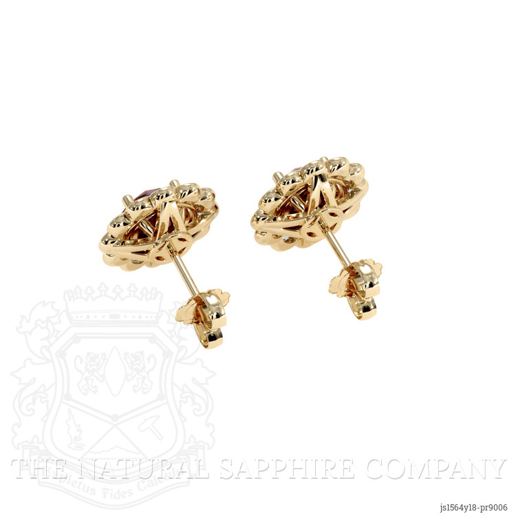 Halo Ruby Earring 2.08 Ct.Tw.Total Carat Weight, 18K Yellow Gold