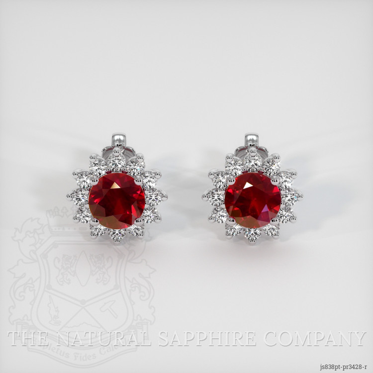 Halo Ruby Earring 2.42 Ct.Tw.Total Carat Weight, Platinum 950