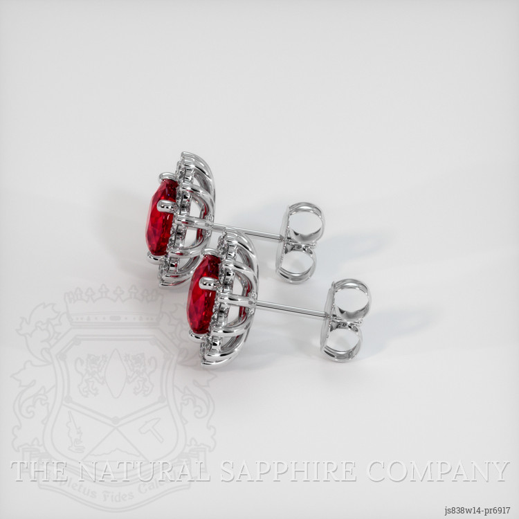 Halo Ruby Earring 2.66 Ct.Tw.Total Carat Weight, 14K White Gold