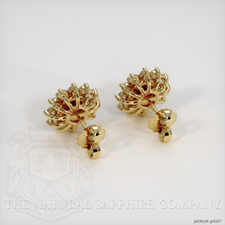 Halo Ruby Earring 2.66 Ct.Tw.Total Carat Weight, 18K Yellow Gold