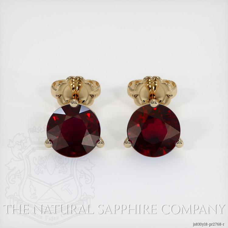 Studs Ruby Earring 3.90 Ct.Tw.Total Carat Weight, 18K Yellow Gold