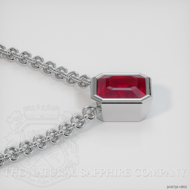 The necklace features a beautiful, transparent C.Dunaigre certified Intense Red 4.21 carat asscher - octagon shape red ruby with the dimensions of 8.84 x 8.70 x 5.04 mm and a asscher cut. It has a clarity grade of very slightly included (evaluated at eye level), vivid color saturation, and an excellent polish. The origin of this ruby is Burma (Myanmar).