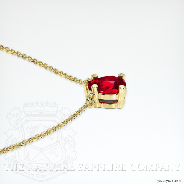Set in lustrous 18K yellow gold, the necklace exemplifies exceptional craftsmanship designed for durability and beauty. The setting not only accentuates the brilliant hues of the ruby but also ensures the gemstone is showcased to its fullest potential. Each facet of the ruby interacts effortlessly with light, its excellent polish enhancing this dynamic play of color and brilliance. Such thoughtful attention to detail is emblematic of The Natural Ruby Company's commitment to outstanding gemstone jewelry, making each piece a harmonious blend of nature and artisan expertise. Our dedication to crafting excellence brings a timeless charm to every piece, highlighting the natural beauty and rarity of gemstones.
