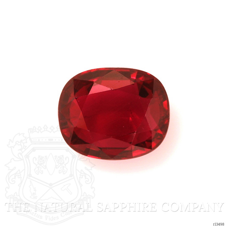 The pendant features a beautiful, transparent GRS certified Vivid Red “Pigeon’s Blood” 1.96 carat cushion shape red ruby with the dimensions of 7.64 x 6.33 x 3.77 mm and a mixed brilliant cut. It has a clarity grade of eye clean (evaluated at eye level), vivid color saturation, and an excellent polish. Enhancement: heat treated. The origin of this ruby is Mozambique.