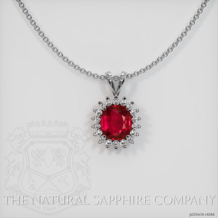Halo Ruby Pendant 2.98 Ct., 14K White Gold
